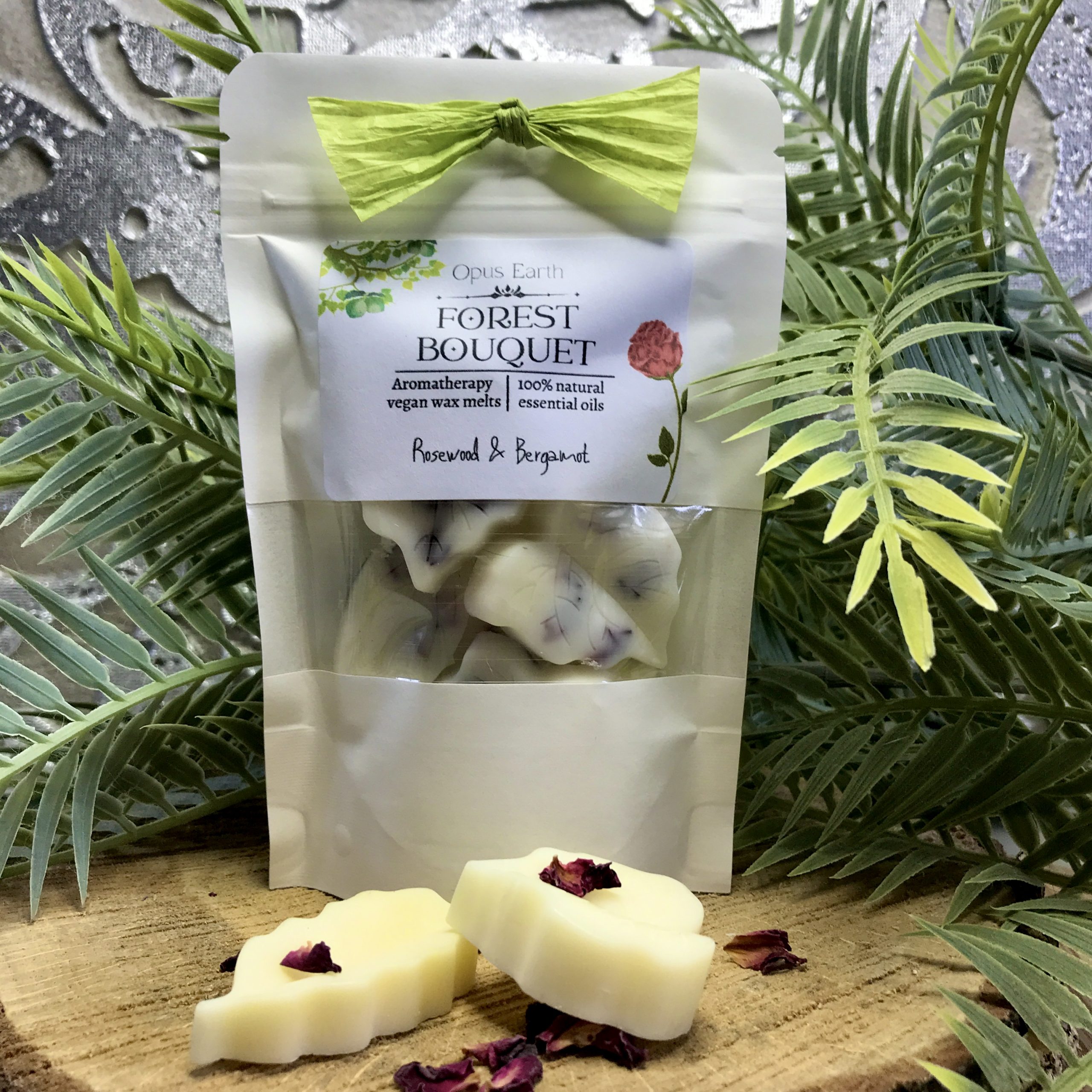 Our Forest Bouquet vegan wax melts are made with coconut & rapeseed wax infused with pure essential oils and natural dried botanical elements. They will fill your home or work space with a beautiful natural scent along with promoting aromatherapy benefits too!