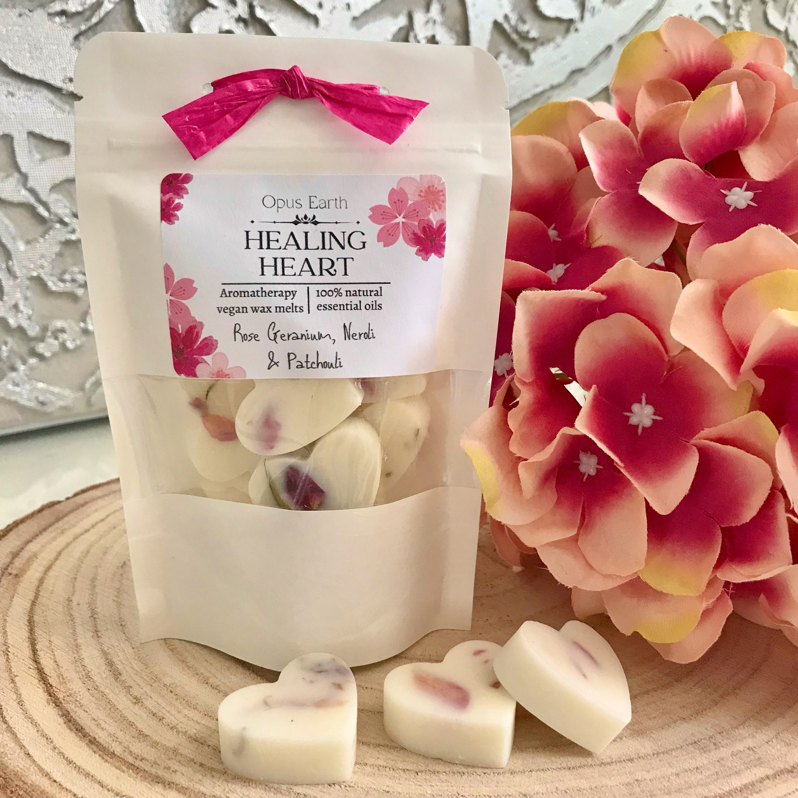 Our Healing Heart vegan wax melts are made with coconut & rapeseed wax infused with pure essential oils and natural dried botanical elements. They will fill your home or work space with a beautiful natural scent along with promoting aromatherapy benefits too!